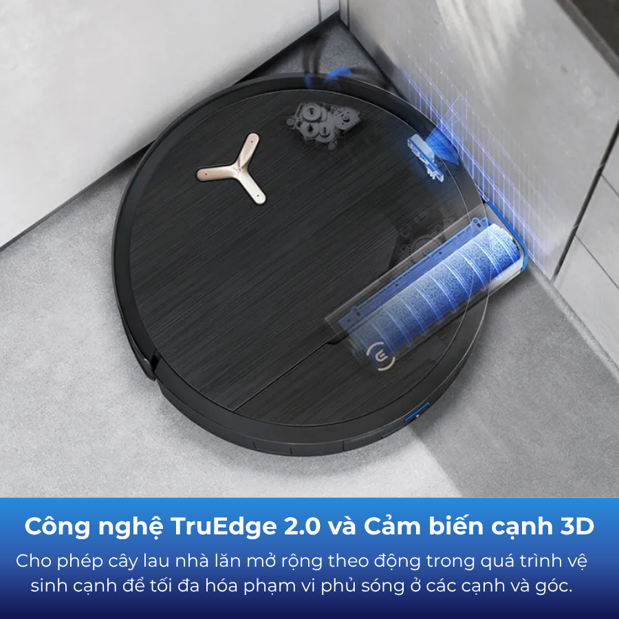 Công nghệ TrueEdge của Ecovacs X9 Pro Omni được nâng cấp lên thế hệ thứ 2, cho phép cây lau nhà lăn mở rộng theo động trong quá trình vệ sinh cạnh để tối đa hóa phạm vi phủ sóng ở các cạnh và góc. Hơn thế nữa, Ecovacs X9 Pro Omni với thuật toán cảm biến nâng cao và Cảm biến cạnh 3D TruEdge hoàn toàn mới, cho phép cây lau nhà xoay liên tục, có thể thích ứng với các loại góc cạnh khác nhau để tránh va chạm không đáng có. Ngoài ra, chổi bên cuả Ecovacs X9 Pro Omni cũng liên tục được mở rộng, để tiếp cận các điểm mù ở các góc khó đạt được phạm vi phủ sóng 100% hơn nhiều*².