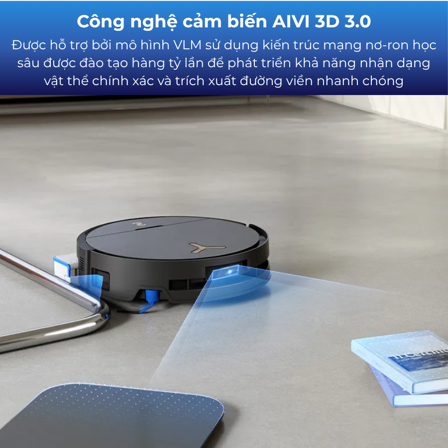 Công nghệ AIVI 3D 3.0 Omni-Approach được hỗ trợ bởi mô hình VLM sử dụng kiến trúc mạng nơ-ron học sâu được đào tạo hàng tỷ lần để phát triển khả năng nhận dạng vật thể chính xác và trích xuất đường viền nhanh chóng. Đèn có cấu trúc phía trước và Cảm biến cạnh TruEdge 3D hoạt động song song để đảm bảo robot luôn ở gần chướng ngại vật trong khi vệ sinh các cạnh. Việc lập kế hoạch đường đi theo thời gian thực cho phép robot phát hiện những thay đổi đột ngột của môi trường như người hoặc động vật đang di chuyển, phản ứng ngay lập tức với chúng.
