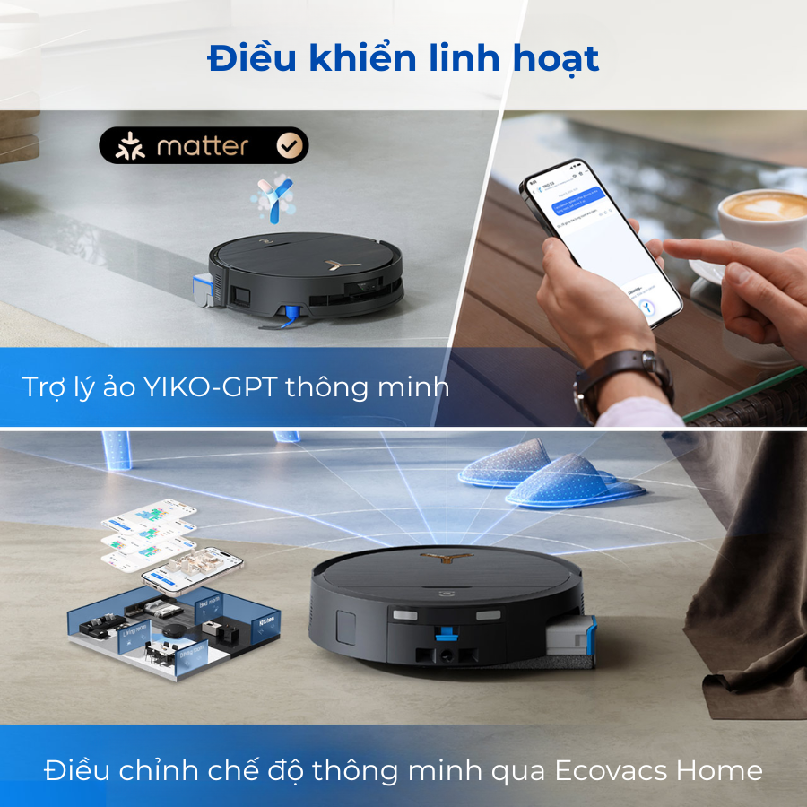Robot hút bụi lau nhà Ecovacs X9 Pro Omni giới thiệu giao diện đàm thoại trực quan, cho phép người dùng tương tác với YIKO Assistant thông qua lệnh văn bản hoặc lệnh thoại bằng tiếng Anh, bao gồm lệnh vệ sinh trực tiếp hoặc yêu cầu về các chức năng không rõ ràng. Với Mô hình ngôn ngữ lớn (LLM) tiên tiến, DEEBOT suy ra ý định thực sự của lệnh người dùng và tự động khớp chức năng phù hợp nhất với khả năng nguyên tử của nó.